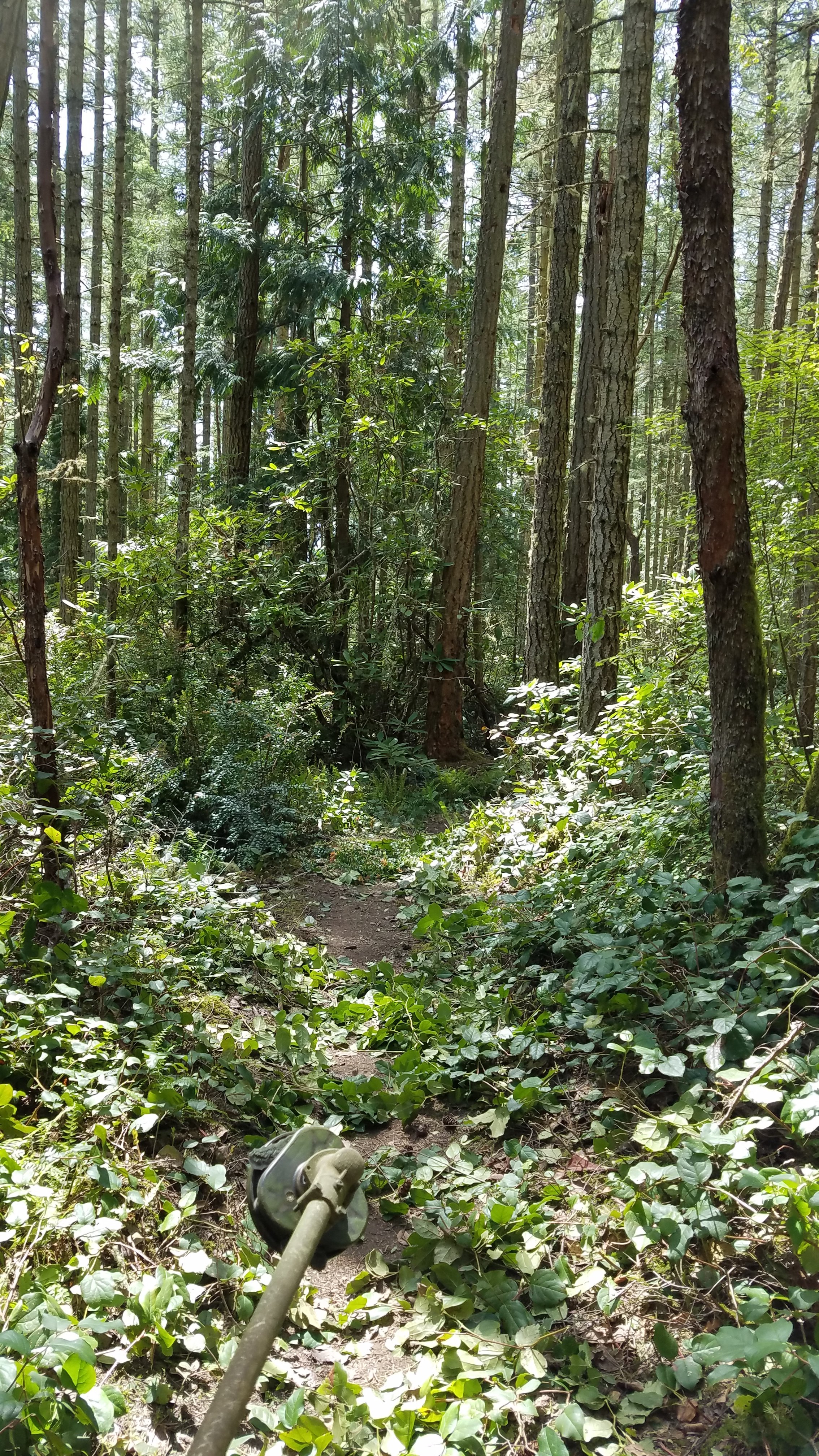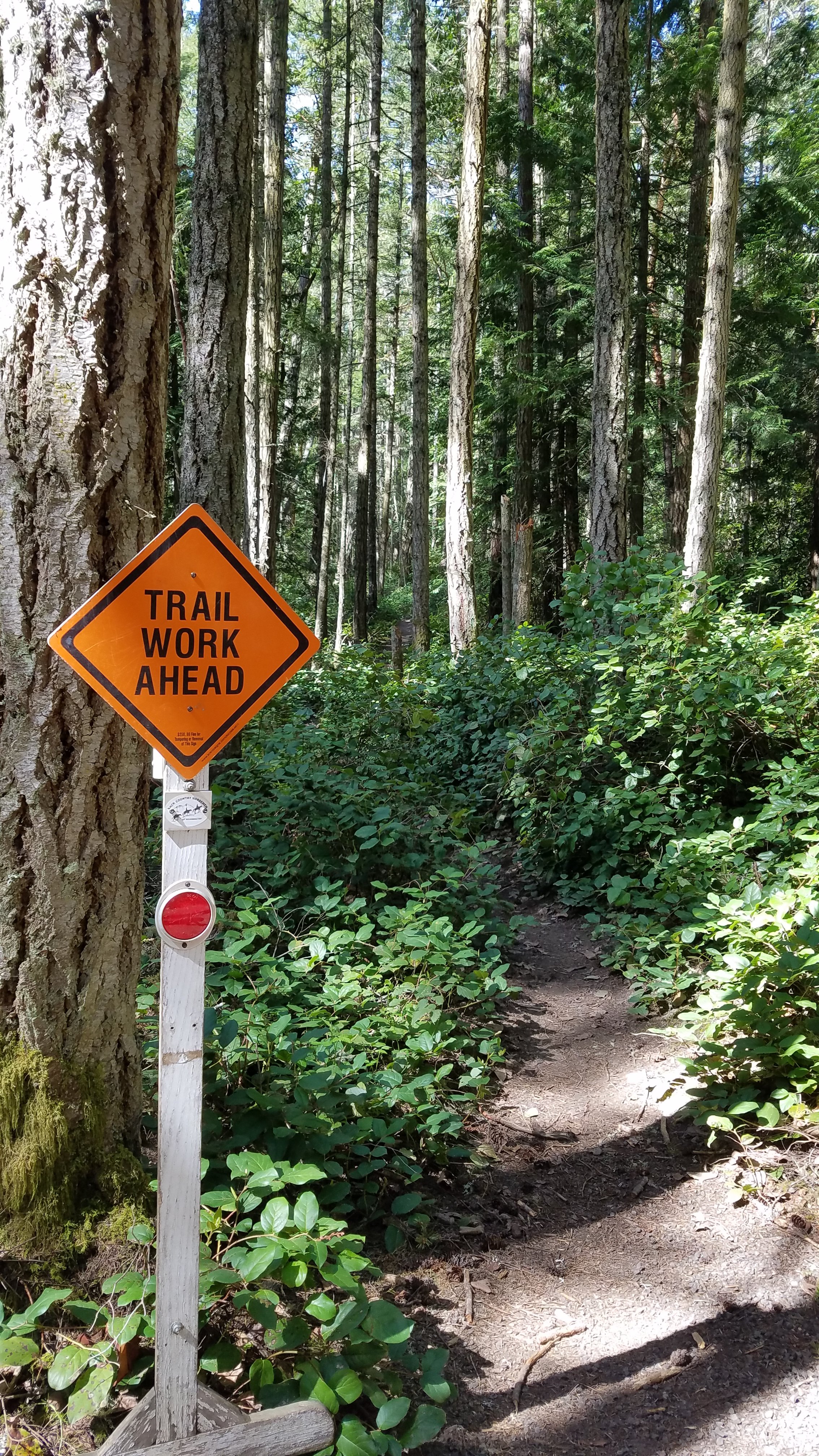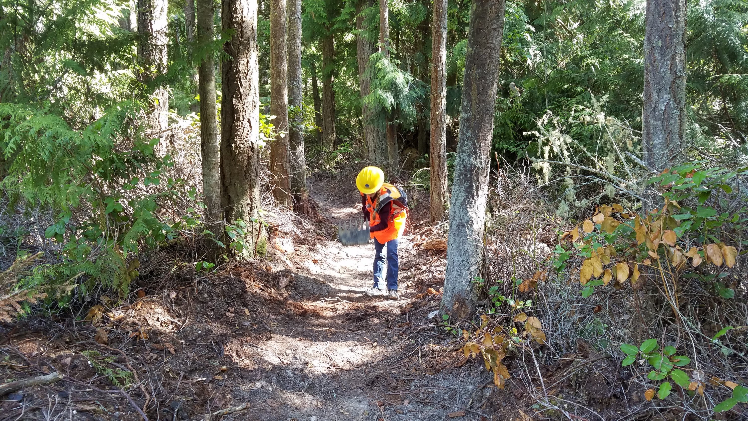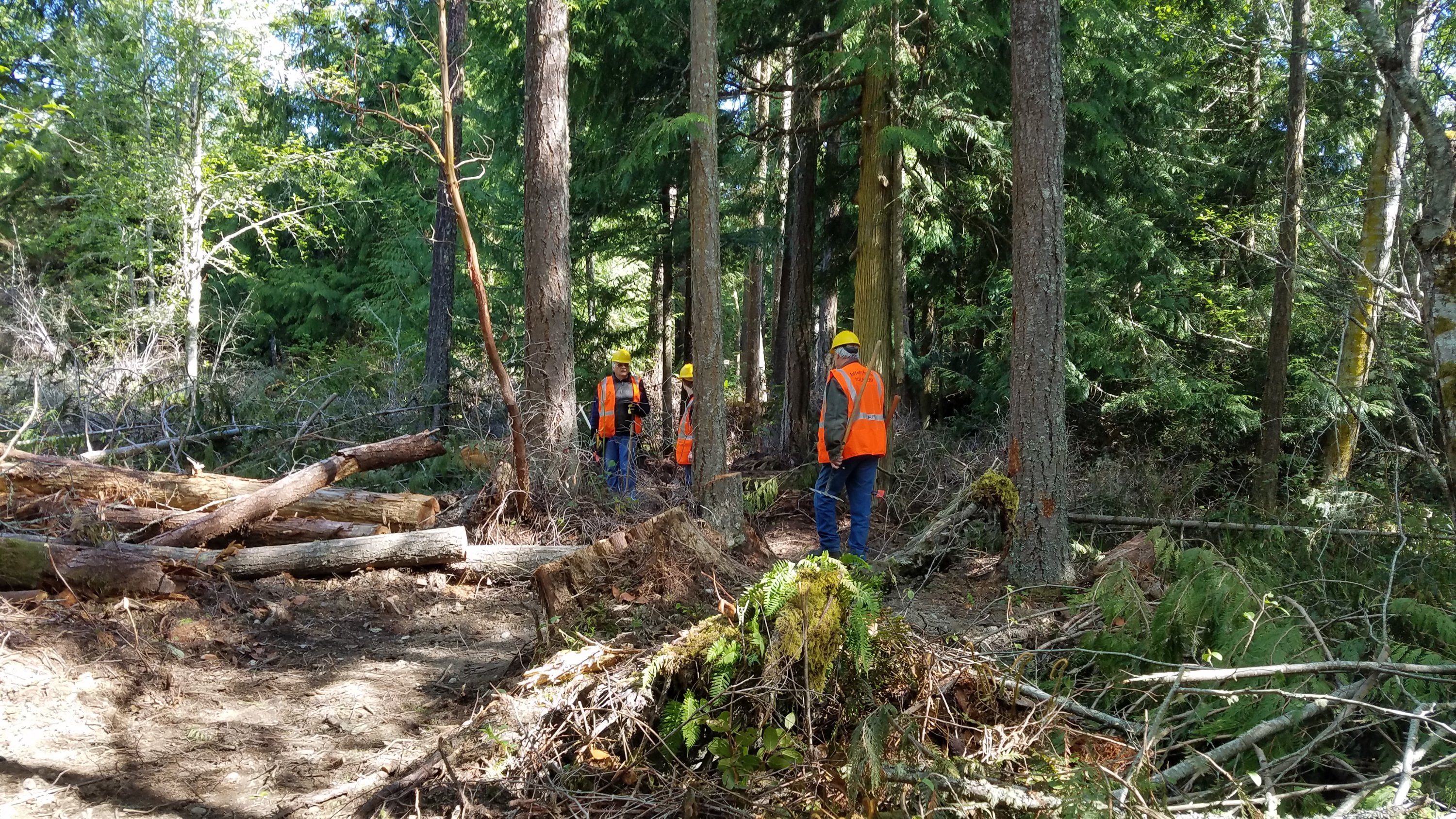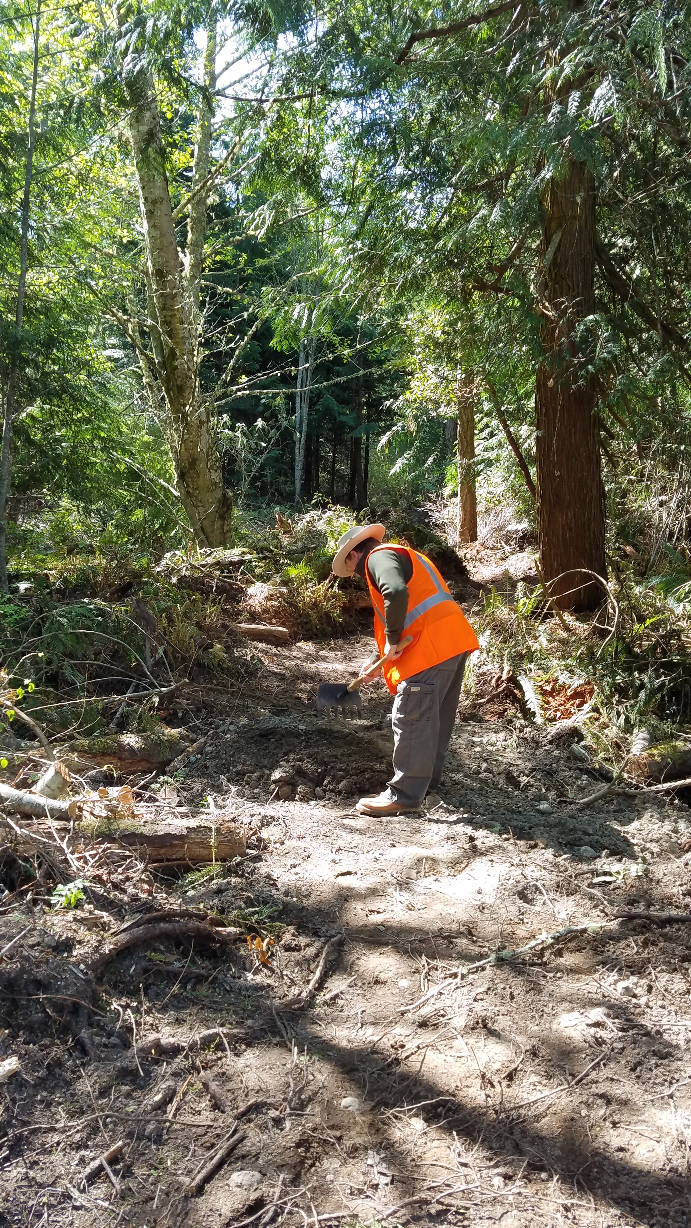 5 crew members continued tread work on the new trail from Cat Lake Rd. Rick had been working on this project at 3 previous work parties so I put him in charge of the tread work while I took a brush cutter and cleaned up the connector trail from the Trailhead Loop to Diamond Point Trail.