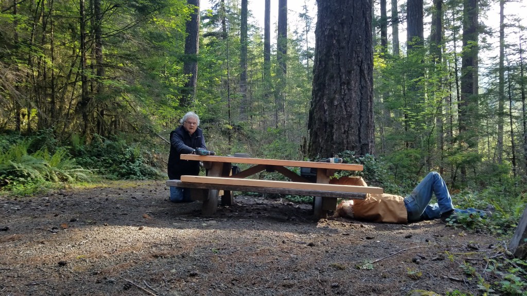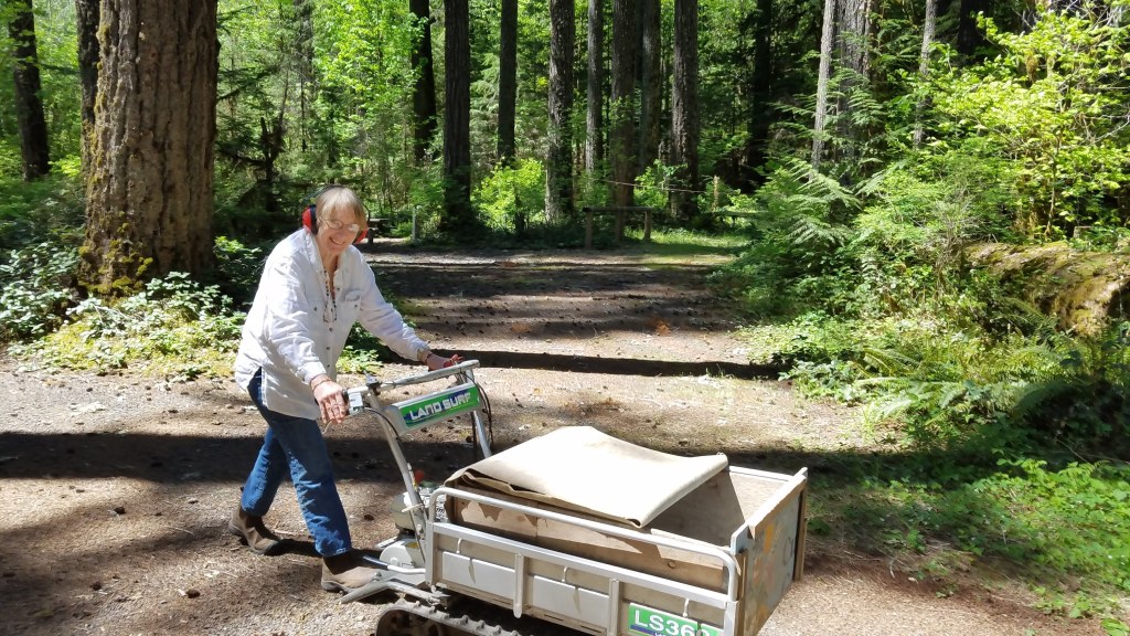 I would like to thank all those that made the LeBar work party successful and fun. It was one of those planned events that could either have worked or not worked. We had 44 yards of gravel being delivered to a locked gated campground in the mountains (LeBar) so it could have been a true disaster if everything didn’t happen like clockwork. For example, the USFS staff needed to make it to the campground just ahead of us to unlock the gate, which did in fact happen. It was a welcomed sight for USFS staff Jai and James to be at the gates Friday morning ahead of Juelie and I with the gravel truck (first load) following us.