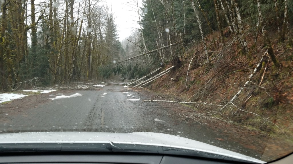 After visiting the bridges, Traci Koch of Oakland Bay chapter suggested we see if we could get to LeBar Horse Camp as planned, about 10 miles further up FS Road 23. After going less than a mile the road became a tunnel through the downed trees, carved out by the firewood permit holders who had been working the road. With barely enough room to squeeze through, 3 SUVs and a pickup truck slowly picked our way through and over the logs, snow and debris, finally making it to the bridges over the Skokomish River and LeBar Creek and the Lower S. Fork Skokomish R. Trailhead. The firewood cutters had gone no further, and our journey ended half a mile from LeBar Horse Camp. https://photos.app.goo.gl/GtC3fSSVJt4X1fJ38