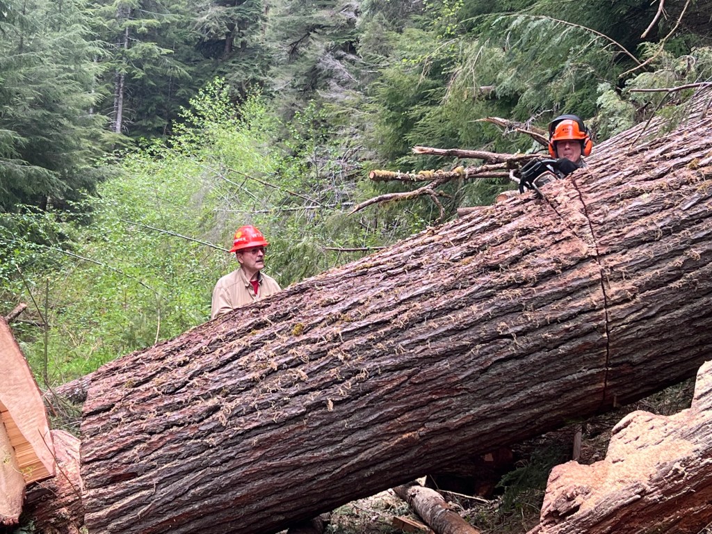 The drive south on US Highway 101 along the Hood Canal gave us a forewarning of what lay ahead. For 50 miles there were downed powerlines and poles, trees and massive amounts of debris piled along the sides of the road. The date was Saturday, February 26th and Buckhorn Range chapter President Kris Lenke and I were on our way to a field trip to the High Steel Bridge and Vance Creek Bridge, organized by Lori Lennox of Grays Harbor Chapter. What we were seeing was the aftermath of a heavy wet snowstorm that hammered the east side of the Olympic Peninsula on Christmas Day. 101 was closed from Hwy. 104 to Hoodsport and power was knocked out for 6 days.