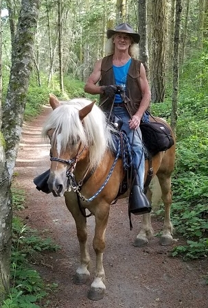 I grew up in Spokane, WA camping, hiking and backpacking with family, Spokane Mountaineers and Girl Scouts. (I was 5 months old the first time I went camping and fishing.) I have a B.A. from The Evergreen State College and M.A.’s from University of Washington and Central WA University. I spent 34 years in education and retired as the Executive Director of Special Services in Puyallup, WA. My first horse, Reveille, was a Mustang. We learned together – him as a yearling and me at 29. He still holds the biggest place in my heart. I live in Chimacum, WA with Dave and my two Grulla quarter horses, Shadow and Fritz.